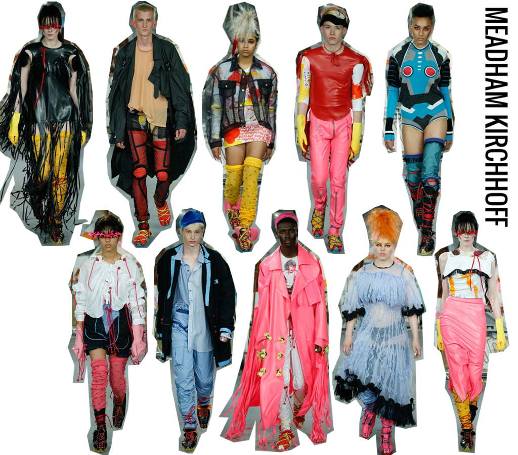Das Duo MEADHAM KIRCHHOFF begeistert mich immer wieder mit seiner Unkonventionalität. Ihr Design lässt sich mit den Worten Mix and Match glaube ich am besten beschreiben. Wild werden alle möglichen Farben, Materialien und Inspirationsquellen gemischt und es ensteht ein rebellicher, frischer Look.